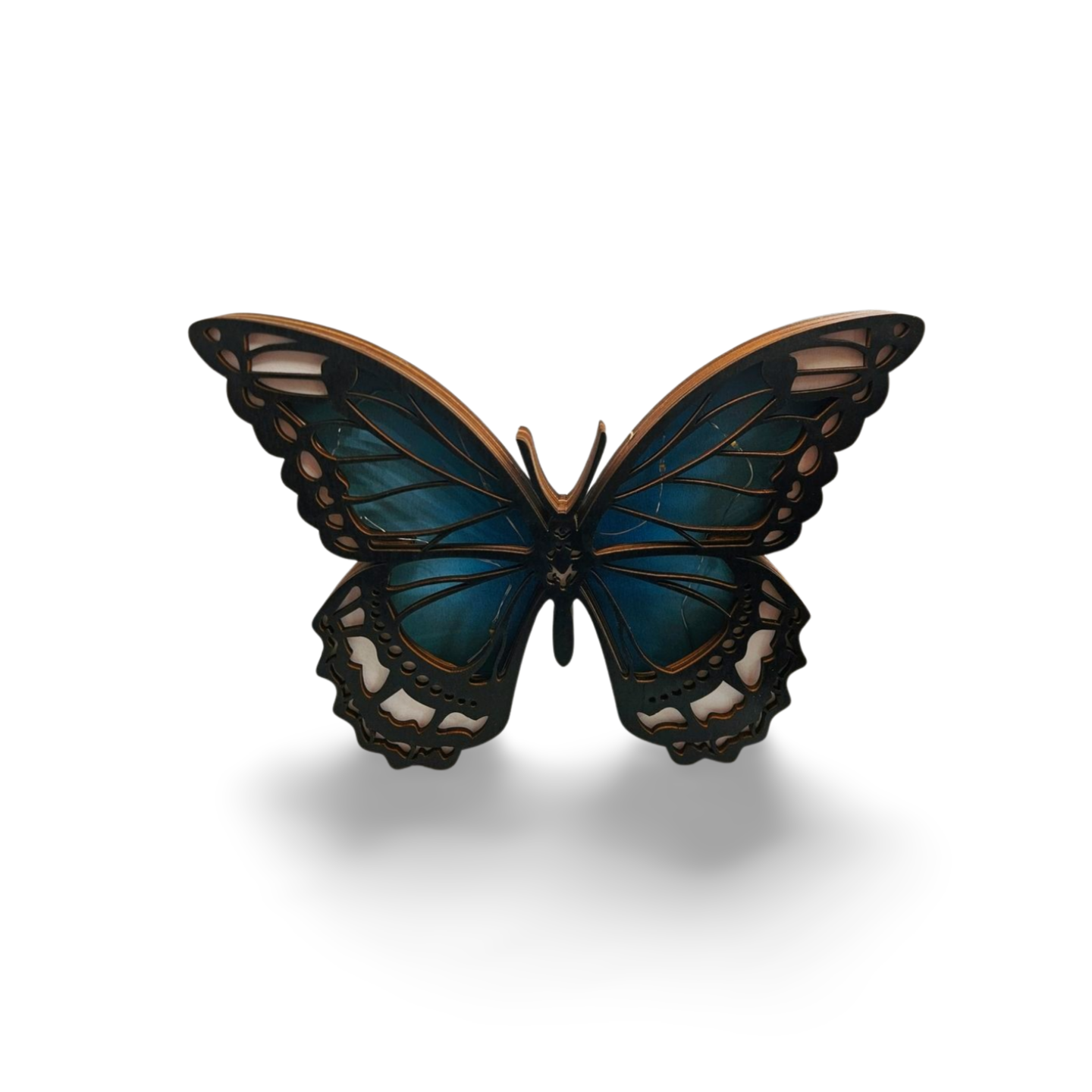 Adaugă un strop de eleganță și liniște în orice încăpere cu această decorțiune luminoasă din lemn, în formă de fluture. Cu un design minimalist și delicat, fluturele impresionează prin liniile sale curate și prin accentele albastre care se luminează discret, creând o atmosferă calmă și plăcută.