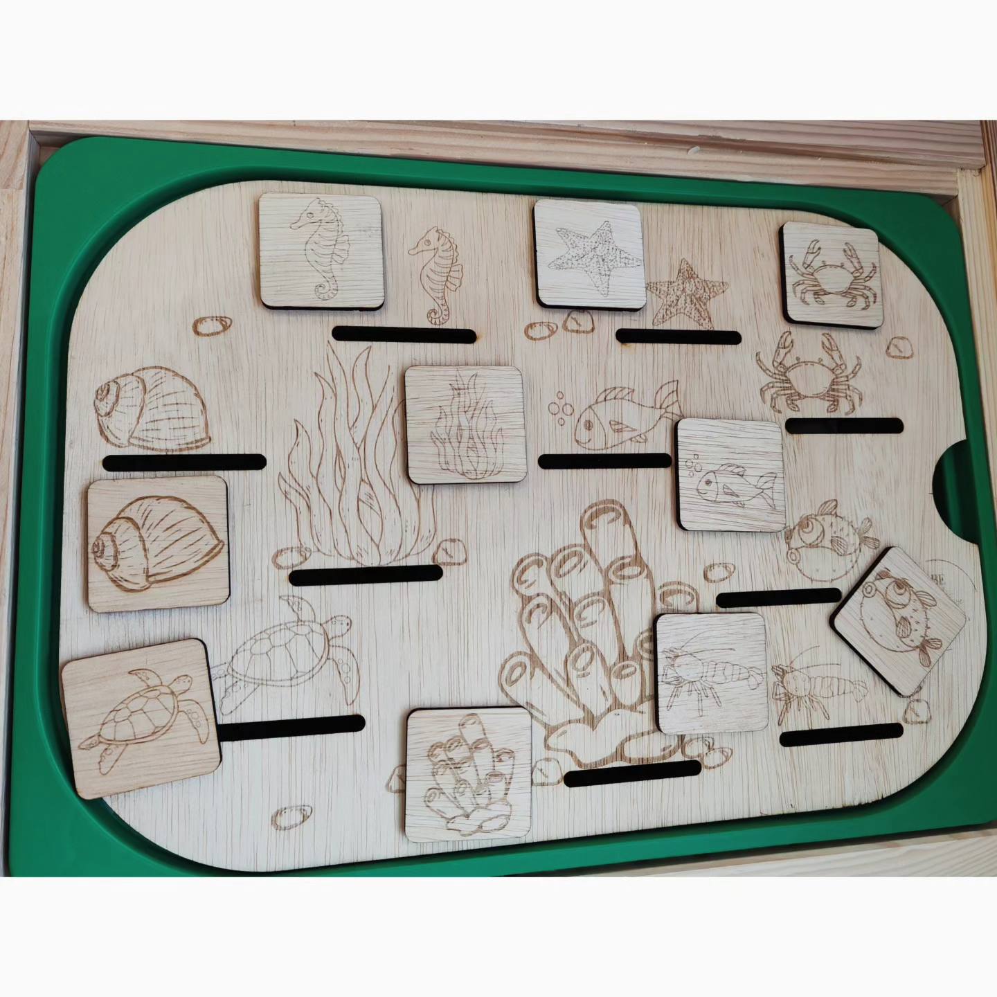 ransformă joaca într-o aventură educativă cu această plăcuță interactivă din lemn, ilustrată cu un peisaj marin fascinant! Concepută special pentru a fi compatibilă cu masa IKEA Flisat, această placă este ideală pentru copii curioși, care învață prin joacă și explorare.