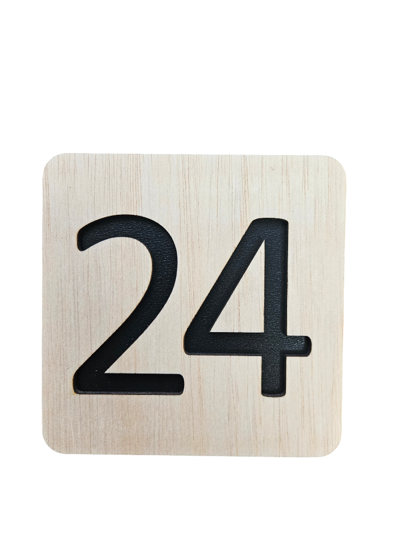Numerotează elegant spațiile din firmă, pensiune, hotel sau instituție cu această plăcuță pătrată din lemn, realizată din două straturi: lemn natural decupat și placă suport neagră, care scoate în evidență numărul camerei sau biroului.